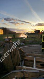 Brennender Misthaufen. Zur besten Abendbrotzeit machten sich Kameraden von Neustadt/Sachsen, Rennersdorf-Neudörfel und Stolpen auf den Weg, um das Feuer zu bekämpfen.