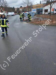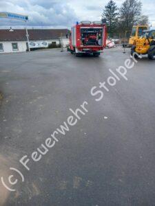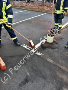 Auf dem Parkplatz eines Supermarktes fanden sich Verunreinigungen durch ausgelaufene Betriebsmittel. Die Kameraden von Rennersdorf und Stolpen stumpften die Dieselpfütze mit Ölbindemittel ab, und nahmen die Verunreinigungen auf.