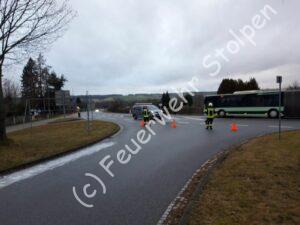 Ausgelaufene Betriebsmittel! Die Kameraden von Rennersdorf und Stolpen trafen sich an der gemeldeten Einsatzstelle am Ortsausgang Stolpen in Richtung Rennersdorf. Zeitnah wurde noch der Einsatzleitwagen (ELW/MZF) in den Einsatz gezogen, um die Lage im Ortsgebiet und im Ortsteil Helmsdorf zu erkunden. In einem großflächigen Bereich der Ortslage Stolpen sowie in Helmsdorf konnten Verunreinigungen festgestellt werden. Dadurch wurde unser Tanklöschfahrzeug ebenfalls mit in den Einsatz genommen. Nachdem die betroffenen Stellen gereinigt und der Einsatz an die Polizei übergeben worden war, rückten wir gegen 19.00 Uhr wieder ein.