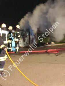 Ein aufmerksamer Mann rief die Feuerwehr, als er einen Altkleidercontainer entdeckte, der in Flammen stand. Bei dem von der Leitstelle gewählten Alarmstichwort war neben einer Drehleiter auch ein Führungsfahrzeug gefordert. Da unser ELW nicht zur Verfügung stand, wurden das Kdow von Neustadt alarmiert. Dieses und die Drehleiter konnten allerdings nach der Lageerkundung aus dem Einsatz entlassen werden, da sie nicht benötigt wurden. Der Kleidercontainer wurde abgelöscht, danach mit hydraulischem Rettungsgerät geöffnet, der Inhalt auseinandergezogen und Restlöscharbeiten durchgeführt. Als alles erledigt war, wurde die Einsatzstelle an die Polizei übergeben und wir konnten den Einsatz beenden. Die Brandursache ist uns nicht bekannt.