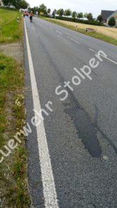 Ausgelaufenen Betriebsstoffe verunreinigten die Fahrbahn der S 159 ab Ortsausgang Stolpen in Richtung Langenwolmsdorf. Das verursachende Fahrzeug hatte einen Motorschaden erlitten. Wir stumpften die Spur mit Ölbindemittel ab, und sicherten die Einsatzstelle bis zum Eintreffen der Polizei. Die Strasse wurde anschliessend maschinell gereinigt.