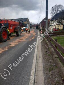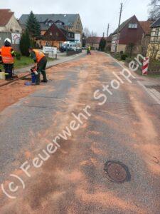 Eine landwirtschaftliche Maschine verlor in der Ortslage Heeselicht Hydrauliköl. Die Kameraden der Feuerwehr sicherten die Einsatzstelle, und stellten gemeinsam mit Arbeitern der Firma zu der das Fahrzeug gehörte sicher, das keine Betriebsstoffe in die Kanalisation gelangen konnten. Eine Fachfirma wurde beauftragt, die Straße zu reinigen und nachdem alles erledigt war, wurde die Einsatzstelle an die Polizei übergeben. Die Straße wurde für die Dauer der Arbeiten voll gesperrt.