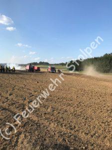 Im Ortsteil Dittersbach der Nachbargemeinde Dürrröhrsdorf Dittersbach brannten Strohballen auf einem Feld, und setzten dieses mit in Brand. Die Kameraden von Stolpen wurden zur Unterstützung nachalarmiert und halfen bei den Löscharbeiten.