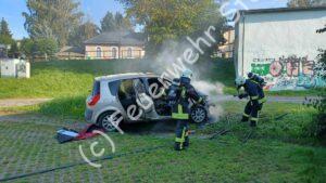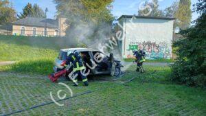 Ein Fahrer bemerkte beim Fahren mit seinem PKW plötzlich technische Probleme. Er konnte das Fahrzeug noch auf einen nahegelegenen Parkplatz steuern und aussteigen, als schon erste Flammen aus der Motorhaube schlugen. Die eingetroffenen Kameraden der Feuerwehr löschten die mittlerweile meterhohen Flammen und sicherten die Einsatzstelle. Nachdem das ausgebrannte Auto abtransportiert wurde, übergaben wir die Einsatzstelle an die Polizei und rückten wieder ein.