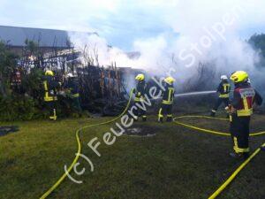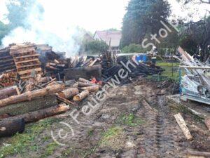 Als die Kameraden der Stolpener Wehr mitten in der Nacht zu einem Einsatz gerufen wurden, waren einige Ortswehren der Dürrröhrsdorfer Löschgemeinschaft schon eine knappe halbe Stunde mit Löscharbeiten in Stürza beschäftigt. Wir wurden nachgefordert um zum einen mit unserem TLF eine Wasserreserve im Bereitstellungsraum zu stellen, und zum anderen mit dem TSF-W beim Aufbau einer langen Wegstrecke zu unterstützen. Ein Schuppen sowie Hecken, Bäume und ein Holzstapel brannten. Zur Ursache ermittelt die Polizei.
