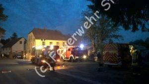 Die ersten Trupps -mit Atemschutzgeräten ausgerüstet- waren bereits auf der Suche nach vermissten Personen und dem Brandherd als in kurzen Abständen die nachgeforderten Einsatzfahrzeuge anrollten, und sich in den Einsatz integrierten.