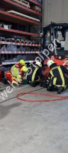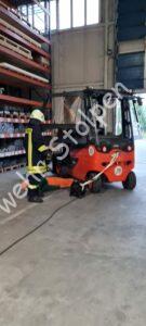 Die Firma Gastro-Service Stolpen stellte ihr Gelände zur Verfügung, um die Feuerwehren der Gemeinde Stolpen bei einem größeren Einsatzszenario gemeinsam üben zu lassen. Es wurde angenommen, das es bei Arbeiten an einer Elektroverteilung zu einer Verpuffung kam. Durch die Stromeitungen übertragen, ergaben sich dadurch mehrere Einsatzstellen über das gesamte Firmengelände verteilt. Die Arbeiter der zweiten Schicht begaben sich beim Alarm unverzüglich am Sammelplatz in Sicherheit, und so konnte zeitnah festgestellt werden, das Zwei fehlen. Eine Person musste direkt am dann „brennenden“ Elektrokasten gerettet werden. Eine Weitere war bei Wartungsarbeiten unter einem Elektrogabelstapler eingeklemmt, welcher zum Laden am Stromnetz hing, und musste mittels hydraulischer Rettungsgeräte befreit werden.
