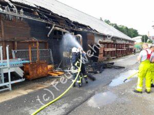 Die „Einsatzwoche“ war anscheinend noch nicht beendet. Erneuter Einsatzalarm! Diesmal ging es nach Langenwolmsdorf, und die Meldung ließ nichts gutes erahnen. Dort brannten ein Spänebunker, sowie Teile einer Produktions- und Lagerhalle einer ansässigen Firma nieder. Nach erster Lageerkundung wurden weitere Löschfahrzeuge sowie eine Drehleiter nachalarmiert. Zum Eigenschutz der Kameraden wurde auch ein Rettungswagen an die Einsatzstelle beordert und die Polizei wurde ebenfalls informiert. Die Kameraden von Stolpen waren unter anderem beim Bau einer stabilen Wasserversorgung eingesetzt. Als Das Feuer gelöscht war, mussten alle Fahrzeuge für den nächsten Einsatz fit gemacht werden. Schließlich weiß man nie, wann es wieder losgeht. In diesem Fall dauerte es gar nicht lange…