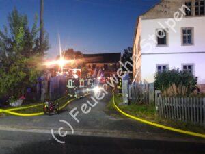 Laut Meldung sollte der Dachstuhl eines Gebäudes in Flammen stehen und es war unklar wie viele Personen sich im Gebäude befinden. Die zuerst eingetroffenen Helmsdorfer Kräfte schickten nach erster Lageerkundung Kameraden zur Menschenrettung und Brandbekämpfung ins Gebäude. Im Verlauf des Einsatzes war zeitnah klar, das sich niemand mehr im Haus befindet. Unter anderem wurde eine Wasserversorgung aus der Wesenitz aufgebaut, eine Drehleiter in Stellung gebracht, Einsatzabschnitte gebildet, die Atemschutzgeräteträger der Fahrzeuge beim Abschnittsleiter Brandbekämpfung versammelt, die Einsatzstelle gesichert, betroffene Straßen gesperrt und natürlich weiterhin Löschmaßnahmen und Lageerkundungen durchgeführt. Um alle Maßnahmen abarbeiten zu können, wurden weitere Kräfte nachalarmiert. Nachdem das Feuer in Ober- und Dachgeschoss gelöscht war, wurden Dämm- und Baumaterialien vom Bereich des Dachbodens aus dem Gebäude verbracht und Restlöscharbeiten durchgeführt. Als nach Beendigung des Einsatzes die Fahrzeuge wieder gut gerüstet für den nächsten Einsatz in ihren Gerätehäusern geparkt waren, zeigte die Uhr schon weit nach Mitternacht.