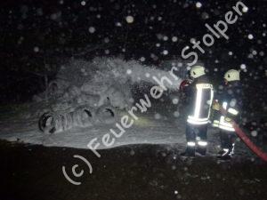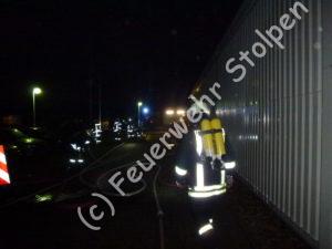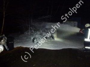 Zu einem gemeldeten Reifenstapelbrand wurden zunächst das Löschfahrzeug von Helmsdorf sowie das Tanklöschfahrzeug von Stolpen alarmiert. Als die Einsatzkräfte eintrafen, stellte sich zum einen heraus das es sich um eine Übung handelte, und zweitens die Kräfte und Mittel vor Ort nicht ausreichen. Daher wurden das Tragkraftspritzenfahrzeug und das Einsatzleitfahrzeug nachgefordert. Den Erstangriff mit einem C-Rohr sowie den Aufbau für Löschschaum führte das TLF von Stolpen durch, die stabile Wasserversorgung stellte das LF von Helmsdorf her. Die Mannschaft des TSF-W übernahm dann die Ablöscharbeiten mit dem Mittelschaumrohr. Der ELW unterstütze den Einsatzleiter bei der Führung des Einsatzes.
