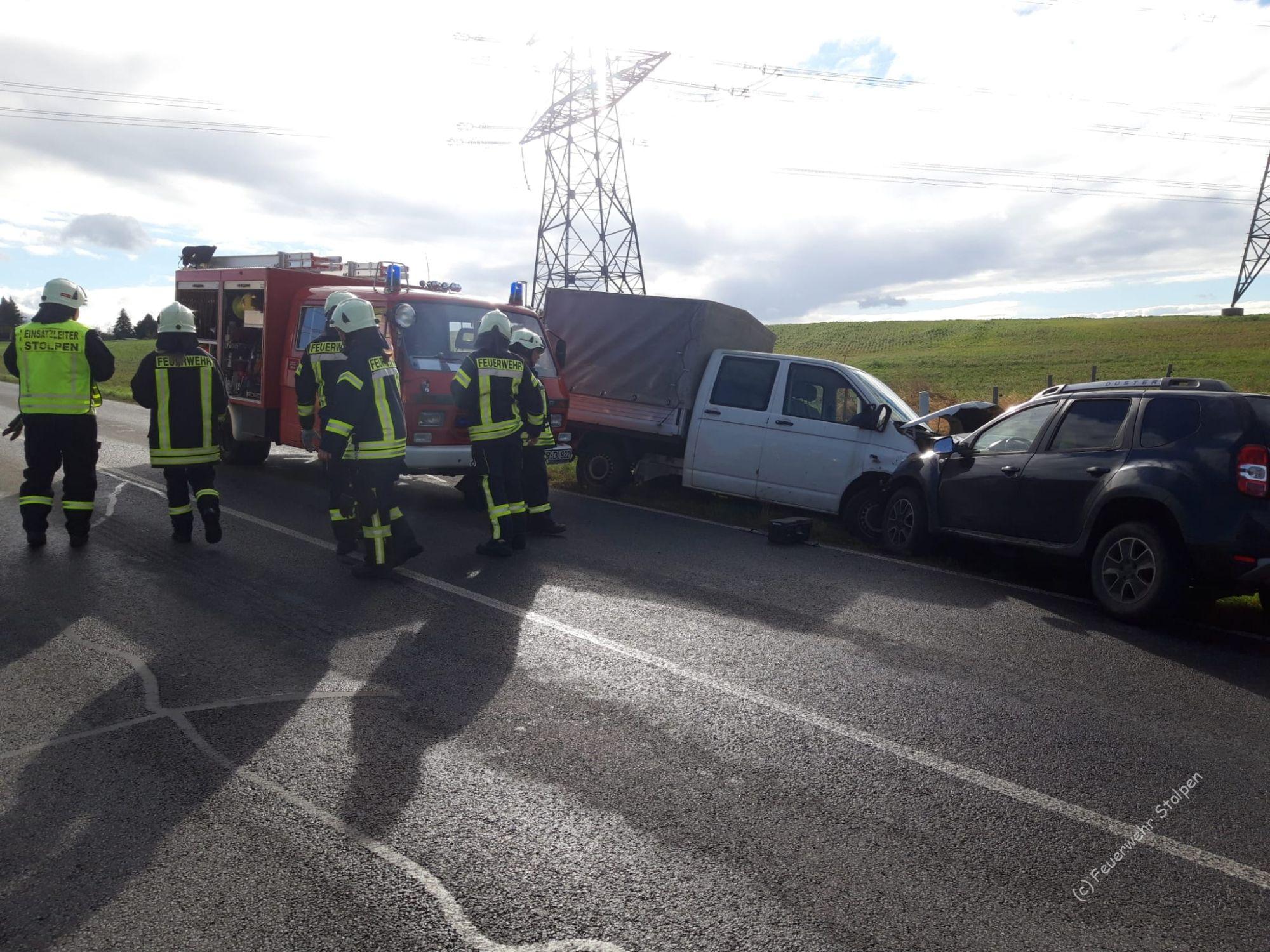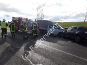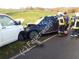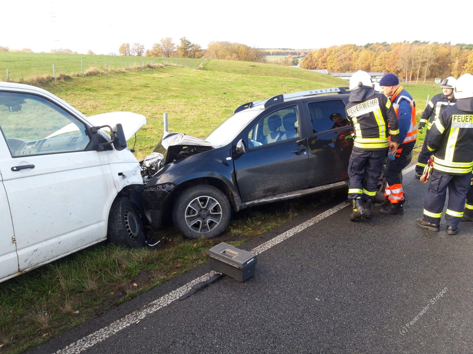 Zwei PKW stießen auf der S159 zwischen Stolpen und Rennersdorf zusammen. In unserer Alarmmeldung wurde von zwei Verletzten und Rauch aus einem Fahrzeug ausgegangen. Der Rauch bestätigte sich nicht. Eine Verletzte Person war bei unserem Eintreffen bereits in der Obhut des Personals eines Rettungswagens, eine zweite wurde dann von Feuerwehrleuten betreut, bis der zweite Rettungswagen ebenfalls an der Einsatzstelle eintraf. Die Rettung mit hydraulischen Rettungsgeräten war nicht nötig. Gleichzeitig wurde die Einsatzstelle weiter erkundet, gesichert und sämtliche entstandene Gefahren beseitigt. Für die Durchführung aller anfallenden Arbeiten war die S159 voll gesperrt. Nach Beendigung unserer Aufgaben übergaben wir die Einsatzstelle an die Polizei und begaben uns wieder an unsere Standorte.