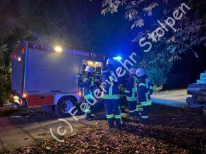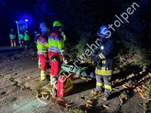 Der pünktlich zum Zeitpunkt der Alarmierung einsetzende Regen und die Dunkelheit waren nicht die einzigen Schwierigkeiten, die dieses Übungsszenario mit sich brachte.