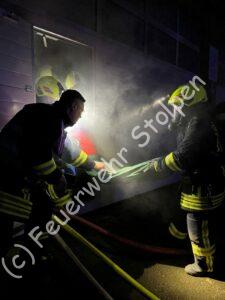 Die Wehren von Langenwolmsdorf und Stolpen wurden zu einem „brennenden“ Bagger gerufen. Noch während der Anfahrt der Fahrzeuge erhöhte die Leitstelle aufgrund neuer Informationen das Einsatzstichwort auf Brand groß. Das „Feuer“ hatte auf ein Gebäude übergegriffen. Mehrere Personen galten als vermisst.