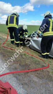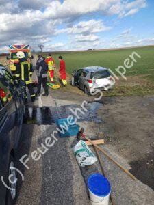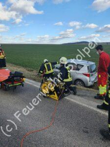 Zu einem Verkehrsunfall wurden die Kameraden von Helmsdorf und Stolpen alarmiert. Nach Absprache mit dem ebenfalls zur Einsatzstelle gerufenem Rettungsdienst wurde mittels hydraulischem Rettungsgerät eine Tür an einem Unfallfahrzeug entfernt, um eine möglichst schonende Rettung einer Person durchzuführen. Nachdem diese befreit war und die Strasse von ausgelaufenenen Betriebsmitteln gesäubert wurde, konnten alle Kräfte wieder in ihre Wachen zurückkehren. Die Strasse war für die Dauer der Rettungsmaßnahmen voll gesperrt.