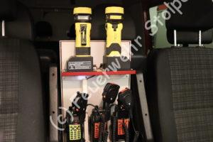 Hier sind alle Gegenstände zu finden, die für die Leitung eines größeren Einsatzes notwendig sind, sowie einige Ausrüstung zum Sichern von Einsatzstellen.