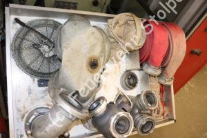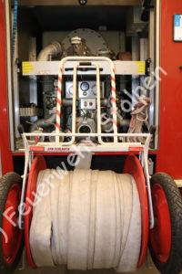 Hier befindet sich der Arbeitsplatz des Maschinisten. Herzstück bildet eine Feuerlöschkreiselpumpe mit 1600 Litern/Minute Förderleistung bei 8 bar.