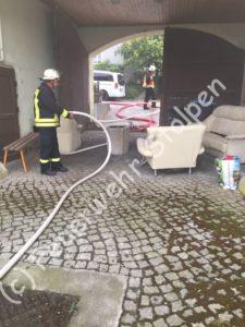 Das Stichwort lautete Technische Hilfe – Person in Notlage. Folglich fuhr das TSF-W zur angegebenen Adresse. Beim Eintreffen des Fahrzeuges quoll dichter Rauch aus den Kellerfenstern, und ein „zufällig“ an der Einsatzstelle stehender Passant berichtete, das Augenblicke zuvor ein lauter Knall zu hören war. Vermutlich waren im Keller lagernde Gasflaschen explodiert.