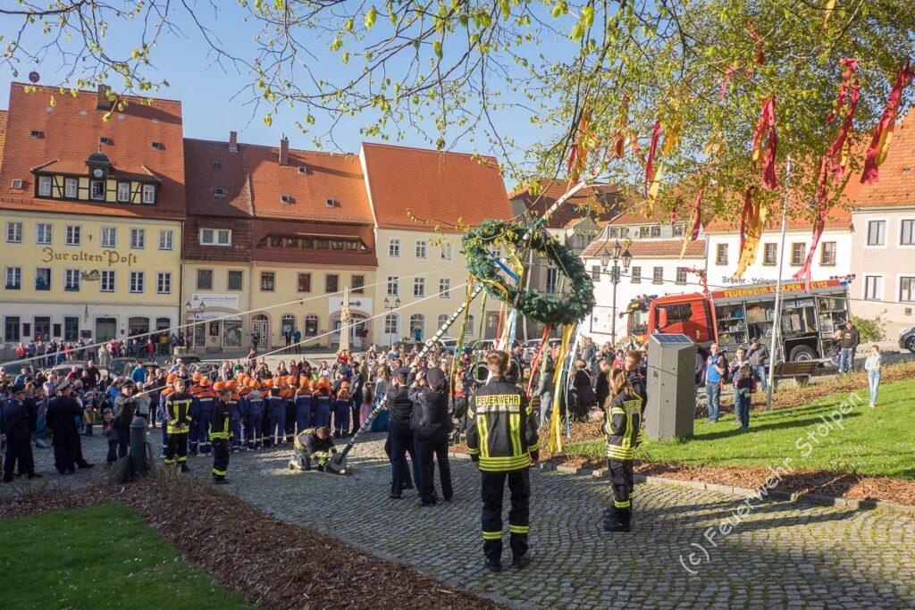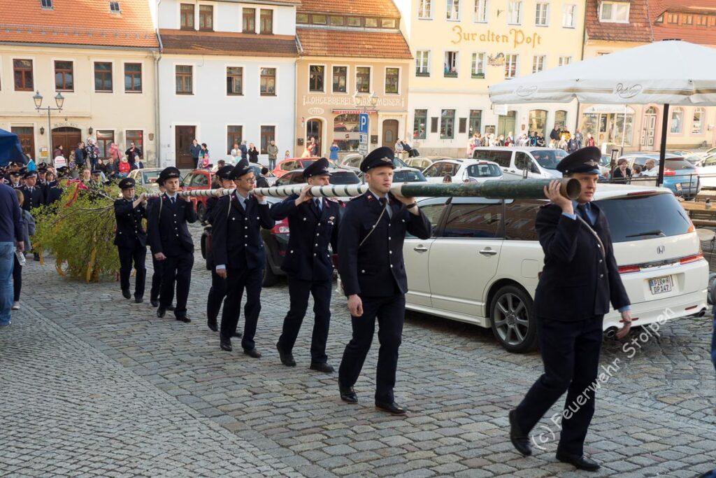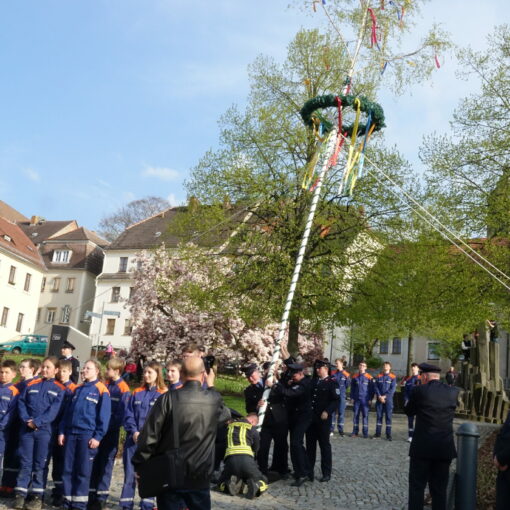 Nachdem wir dann einen schönen „Tag der offenen Tür“ genießen konnten, sammelten wir uns gegen 18.00 Uhr, um den Maibaum aufzustellen.