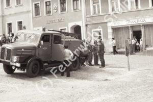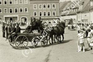 Im Mai 1932 erwarb man eine Motorspritze der Firma Fischer aus Görlitz und montierte sie auf dem Wiegand’schem Wagen. Das war sozusagen das erste Feuerwehrauto in Stolpen.