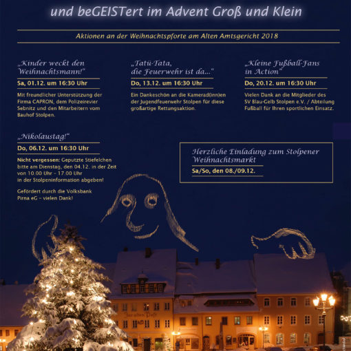 Die Veranstaltung findet am Sonnabend, den 18. Januar 2020 ab 15.30 Uhr im Außengelände der Gärtnerei Kleinstäuber (Ortsverbindungsstrasse Stolpen – Lauterbach) statt.